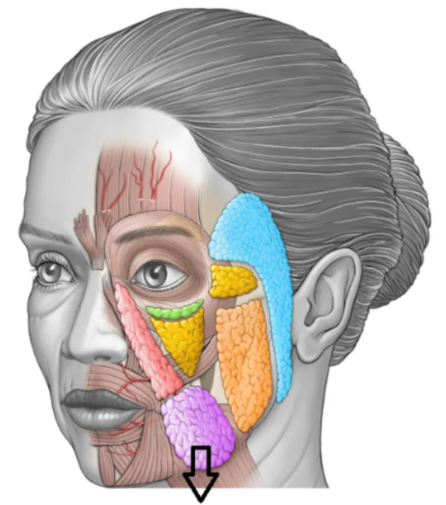 Avec le temps, le derme s’appauvrit en collagène et élastine et les ligaments de soutien se détendent. Les volumes descendent sous l’effet de la gravité en créant des bajoues et un contour moins lisible.