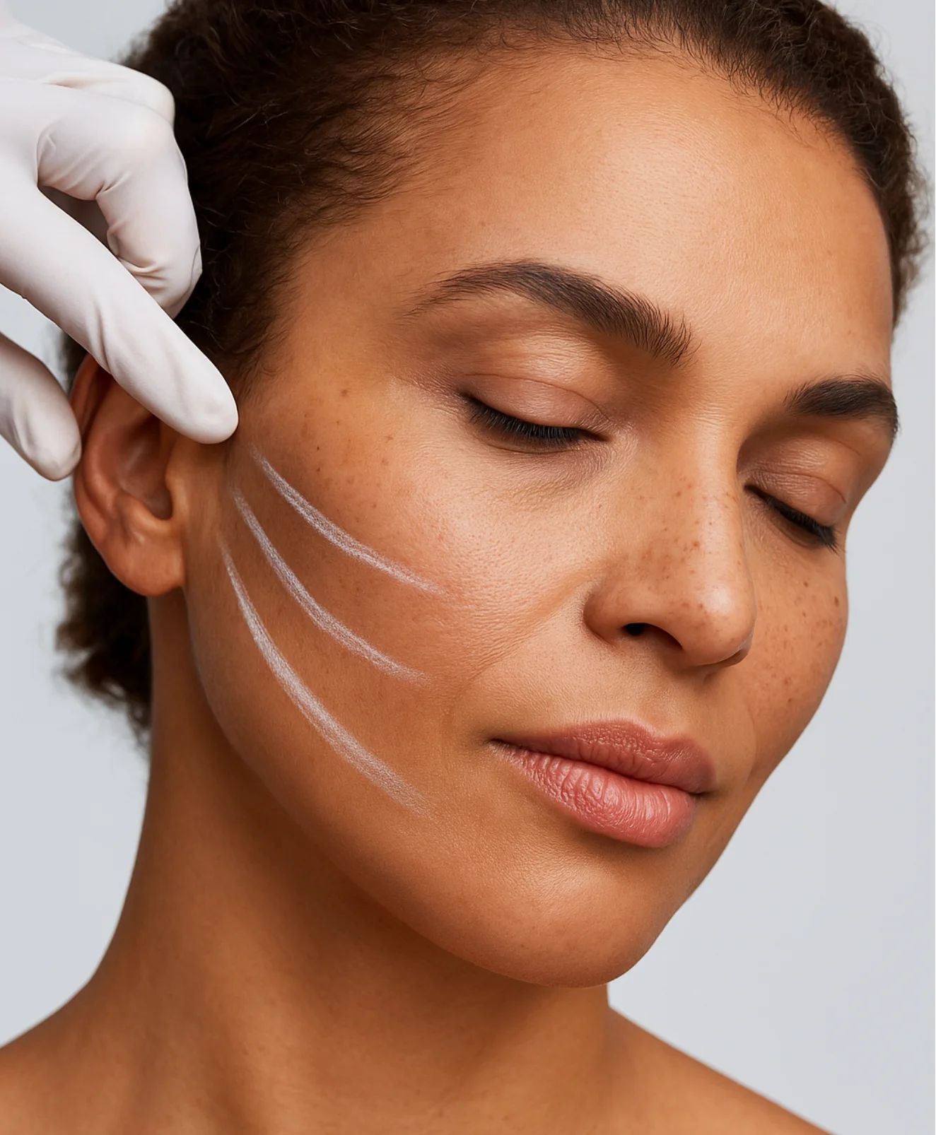 - Ovale / mâchoire : corriger un début de traitement du relâchement cutané.