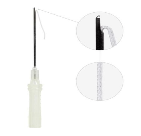 Ces fils sont très fins et sont surtout utilisés pour parfaire une zone particulière du visage grâce à la stimulation de la synthèse de collagène. Ils n’exercent aucune traction mais uniquement une biostimulation des fibroblastes. C’est là que les fils lisses type Ultra V Octo Twist (PDO torsadé, montés sur canule) sont utiles pour combler les rides comme les rides du lion, pli d’amertume ou les sillons naso génien