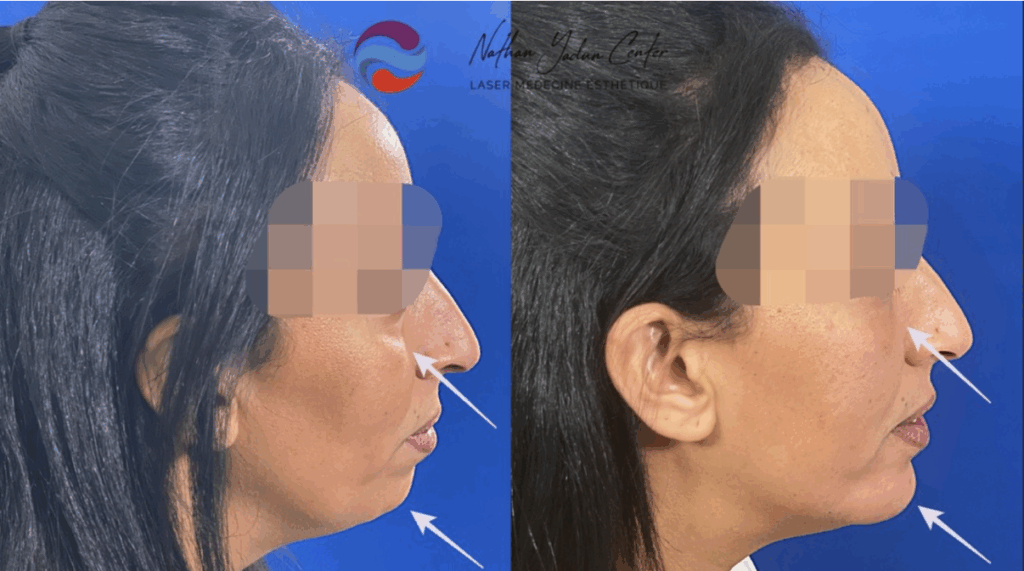 Selon l’anatomie, un traitement esthétique menton léger suffit mais dans d’autres cas une augmentation du menton sans chirurgie un peu plus importante est nécessaire.