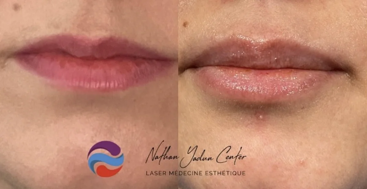 En cas d’excès de produit ou d’effet non souhaité, la présence de hyaluronidase au cabinet permet de dissoudre l’acide hyaluronique pour les lèvres et de revenir à l’état initial.