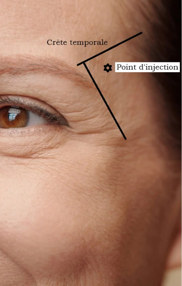 Les tempes creuses peuvent être aggravées par un affaissement de la pommette. L’injection concomitante permettra une restauration des volumes faciaux et de meilleurs résultats.
